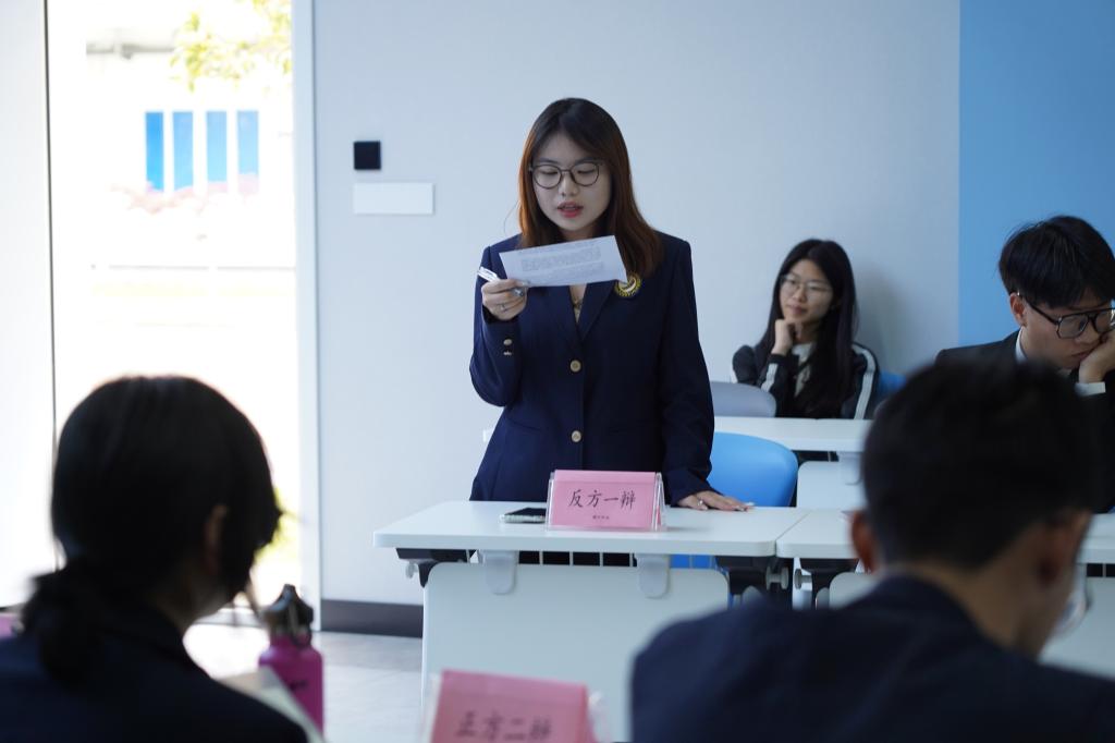 “防范电信诈骗从健全制度入手还是从自我防范入手?”4月16日下午,现代港口贸易学院2024年法治专题辩论赛决赛现场,一场关于反诈的辩论赛在海德楼4122教室上演。