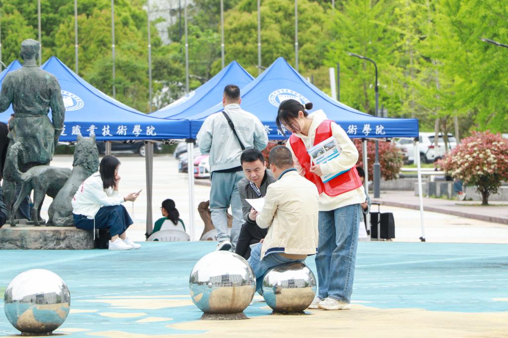 在考生进入候考区后,志愿者引导家长进入休息区,并为家长送上矿泉水缓解情绪,耐心地为家长介绍我校招生情况和专业设置,与家长分享自己的求学心得和住校体验。