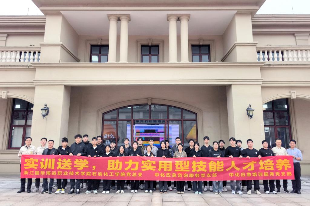 实训开始前,石油化工学院党总支教师代表、青年团员和中化(舟山)危化品应急救援基地有限公司咨询服务党支部、应急服务党支部党员代表还共同举行了校企合作“实训送学,助力实用型技能人才培养”活动启动仪式。