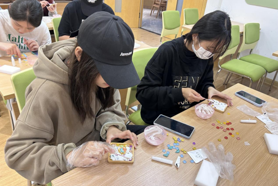 学生志愿们在教室里两两组合,围绕活动主题,利用珠子和胶水等材料,充分发挥自身想象力,在垫子上设计出形象丰富的创意搭配,将春天的美丽留下,一个个不起眼的垫子变成了设计感十足、时尚的个性垫。