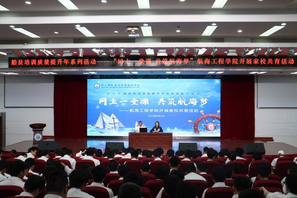 为促进学校教育与家庭教育的协调发展,增进家长与学院之间的沟通交流,形成良好的家校合力,6月2日,航海工程学院在图书馆四楼报告厅召开了“同上一堂课,共筑航海梦”家校共育讲座,并在公众号同步直播。航海工程学院全体行政班子、2025届考证班学生以及家长、相关班主任、辅导员参加此次活动,会议由学院党总支书记徐盈主持。