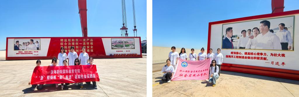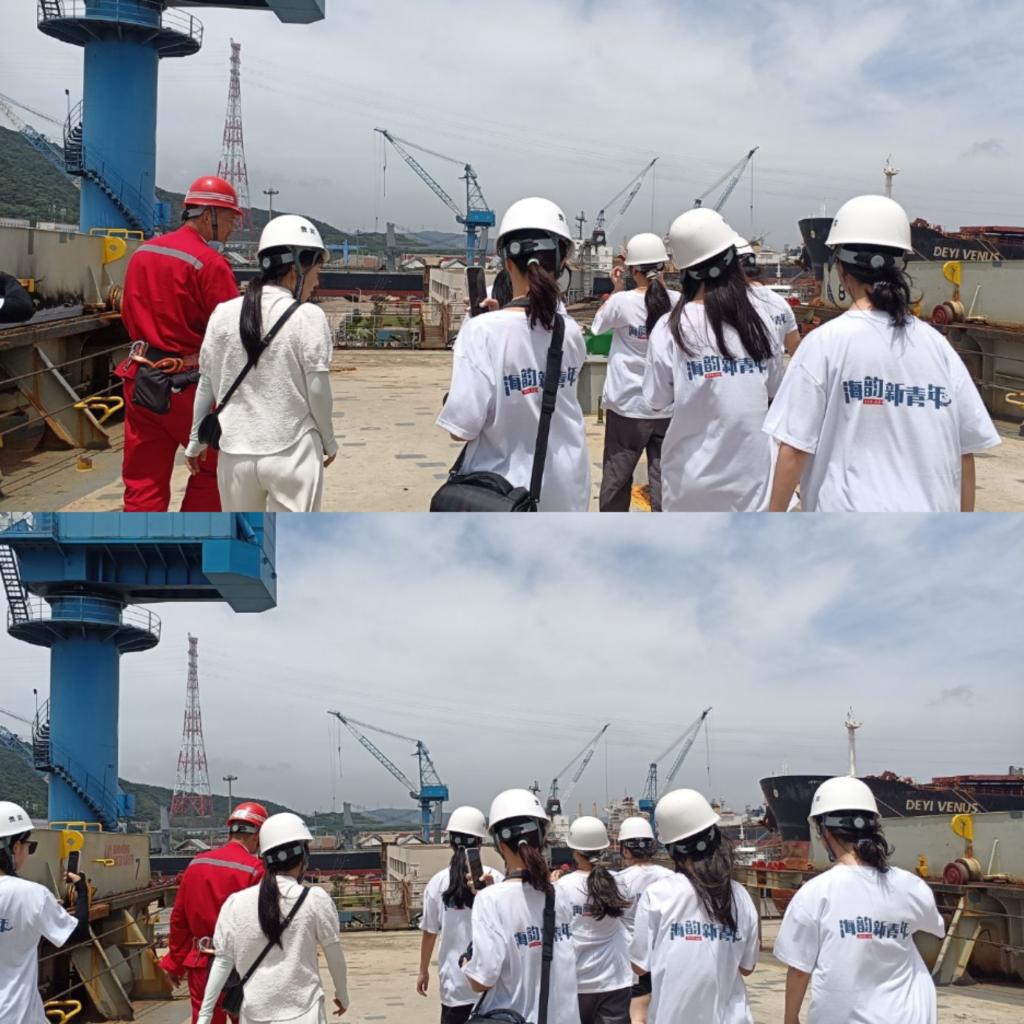 7月2日、4日和5日,“‘浙’船扬帆“新”航道”社会实践团分别对舟山市华丰船舶修造有限公司、长宏国际船舶修造、舟山中远海运重工有限公司等舟山大型企业实地调研,在了解这些公司的生产规模、技术实力和未来发展趋势的基础上,深刻理解习近平总书记提出的新质生产力的重大意义。最为鼓舞人心的是,队员们了解到舟山船舶企业在国家实体经济转型过程中,面对国内外经济环境复杂多变的大环境,不仅实现了逆势增长,取得了诸多喜人成绩,还不忘回报社会,提升员工福利,辐射带动周边社区医疗、海岛建设等为浙江共同富裕示范区做出了舟山样板。队员们纷纷表示在舟山就业,大有可为。