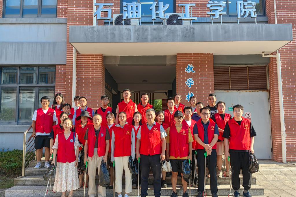 会后,石油化工学院组织全院教职工在校区内外开展了卫生清理志愿活动。(石油化工学院)