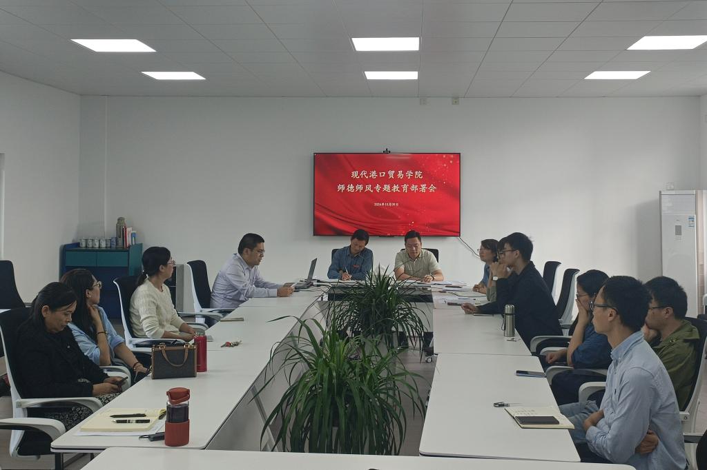 10月9日,现代港口贸易学院在海德楼党员活动室召开了全体教职工大会暨师德师风专题教育部署会。会议由学院党总支书记李刚主持。