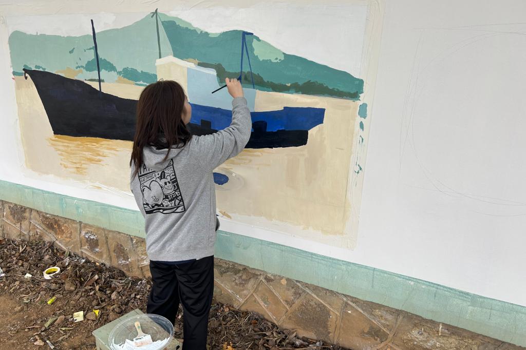 小岛你好 公益墙绘扮靓乡村——现代港口贸易学院赴岱山长涂岛开展公益墙绘