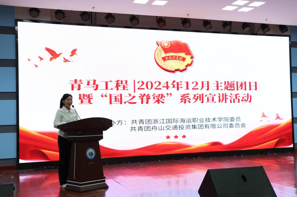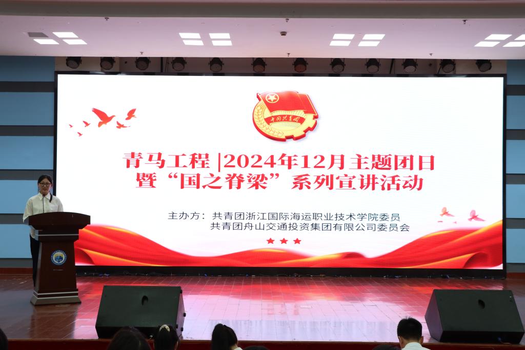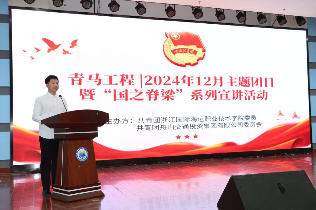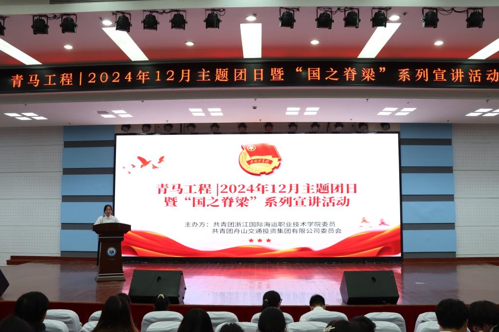 为引导团员和青年厚植家国情怀,铸牢政治品格,12月18日,由校团委和舟山市交投集团团委联合举办的“国之脊梁”系列宣讲暨2024年12月主题团日活动在图书馆报告厅顺利举行,200余名青马班学员、各班团支书到场观看。