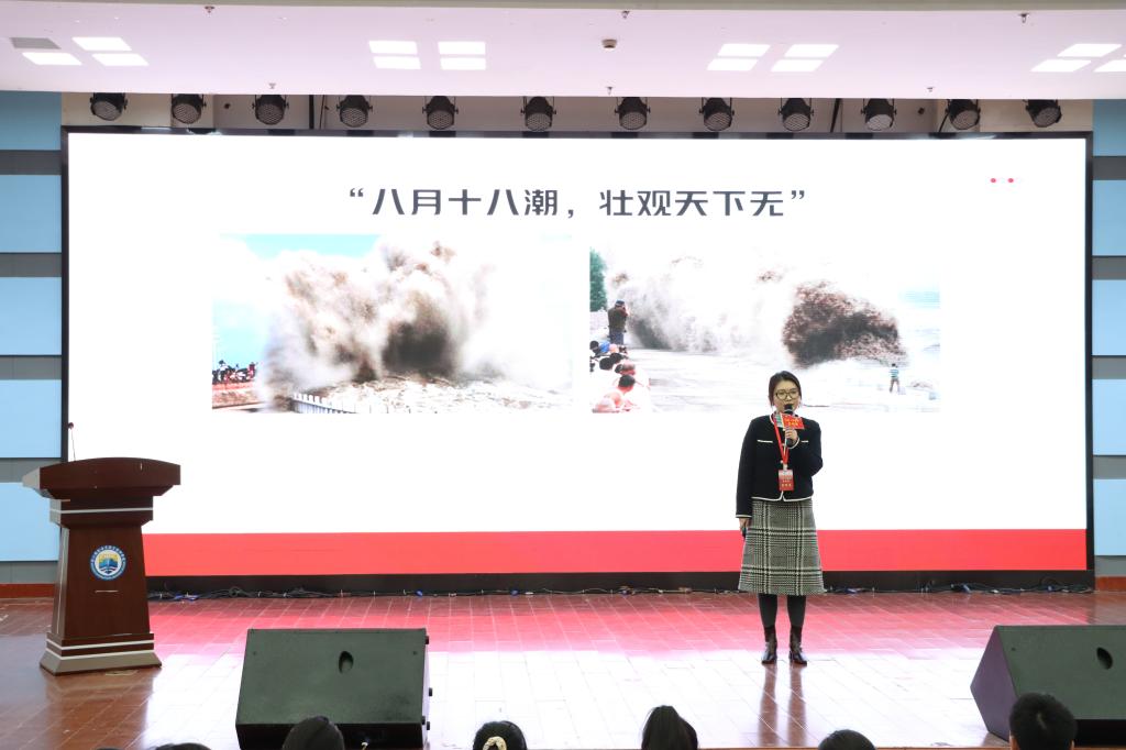 来自舟山交投集团的宣讲员孙玮鸿、王浩男分别为大家带来了桥梁专家茅以升和中国核潜艇先驱黄旭华的故事,带领大家走近中国科学家的传奇历史。他们用朴实的话语和真挚的情感生动诠释了什么是真正的“国之脊梁”,让同学们深刻体会了到大国工匠的责任与担当。
