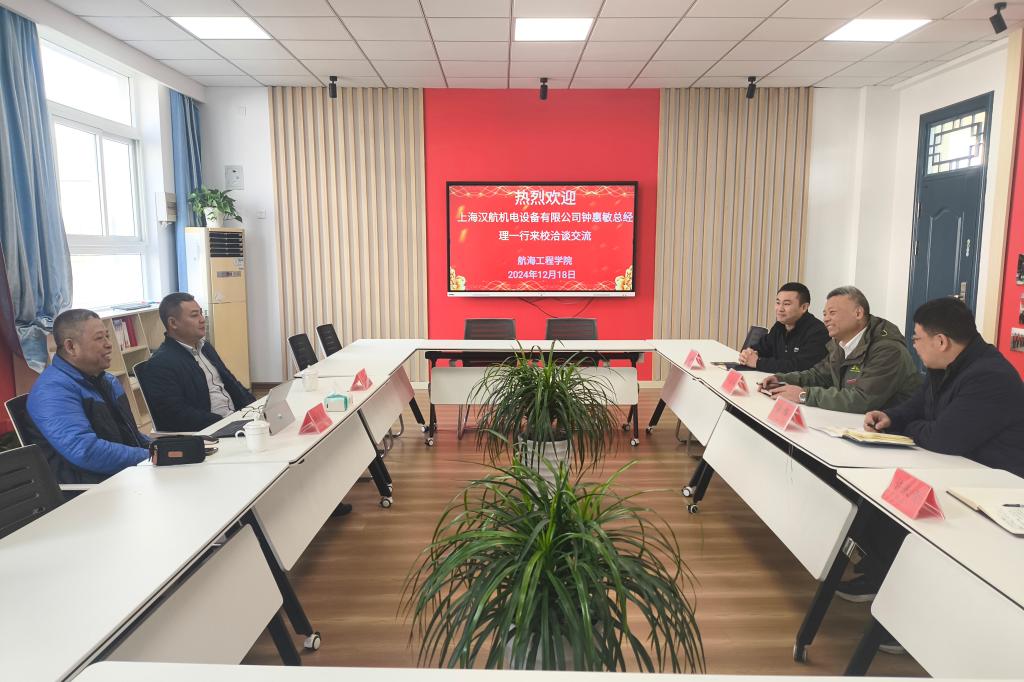 12月18日,上海汉航机电设备有限公司总经理钟惠敏一行来访航海工程学院洽谈合作。航海工程学院院长汪益兵、副院长黄华及船舶电子电气技术专业相关教师参加座谈会。