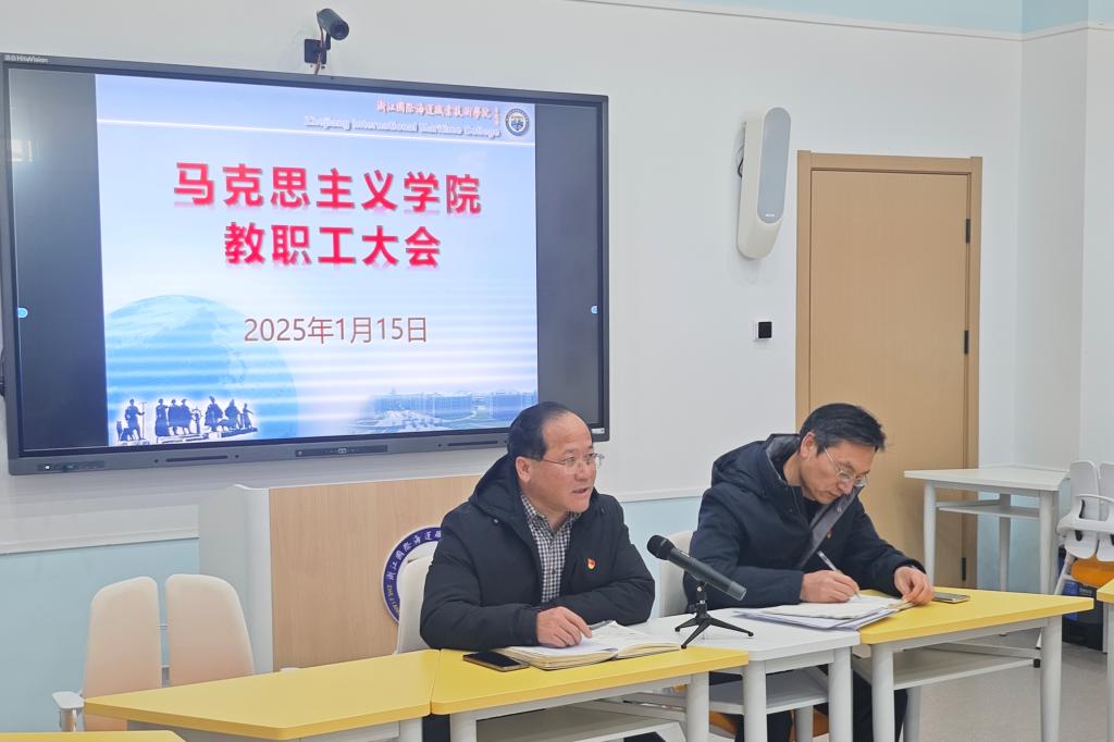 孔志光副书记在讲话中充分肯定了学院一年来所取得的成绩,也向大家转达了学校领导对全体教职工的问候。会上,他对学院2025年工作提出了希望和要求:一是守正创新,进一步推进思政课建设内涵式发展,课堂提升;二是立德树人,进一步促进大思政工作形成合力,更富成效;三是以点带面,进一步提升大中小学思政课一体化建设实效,引领学生成长成才;四是以教育家精神为引领,大力推进思政课教师队伍建设;五是以党建双创为抓手,着力创建党建品牌。(马克思主义学院)