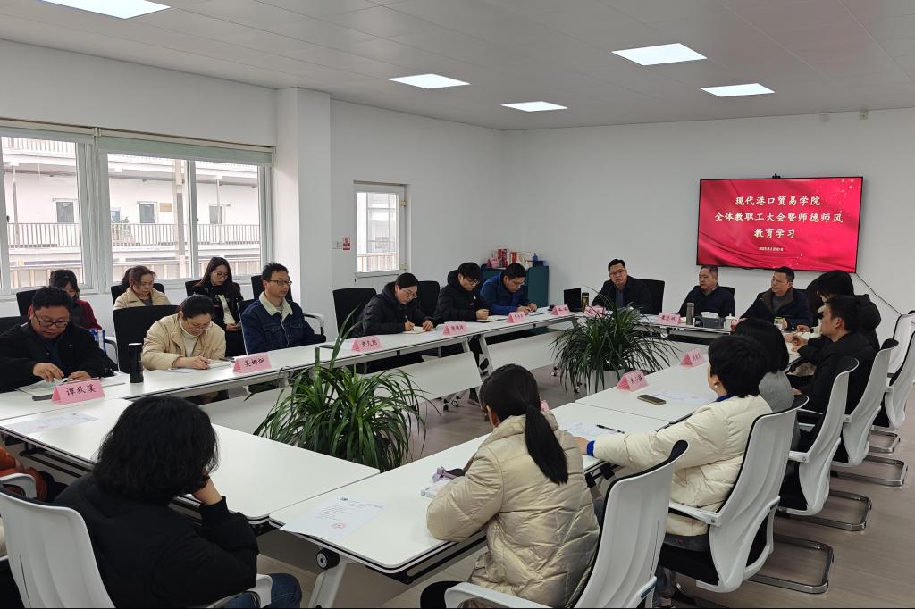 凝心聚力,再创辉煌——现代港口贸易学院举行春季学期全体教职工大会暨师德师风教育学习