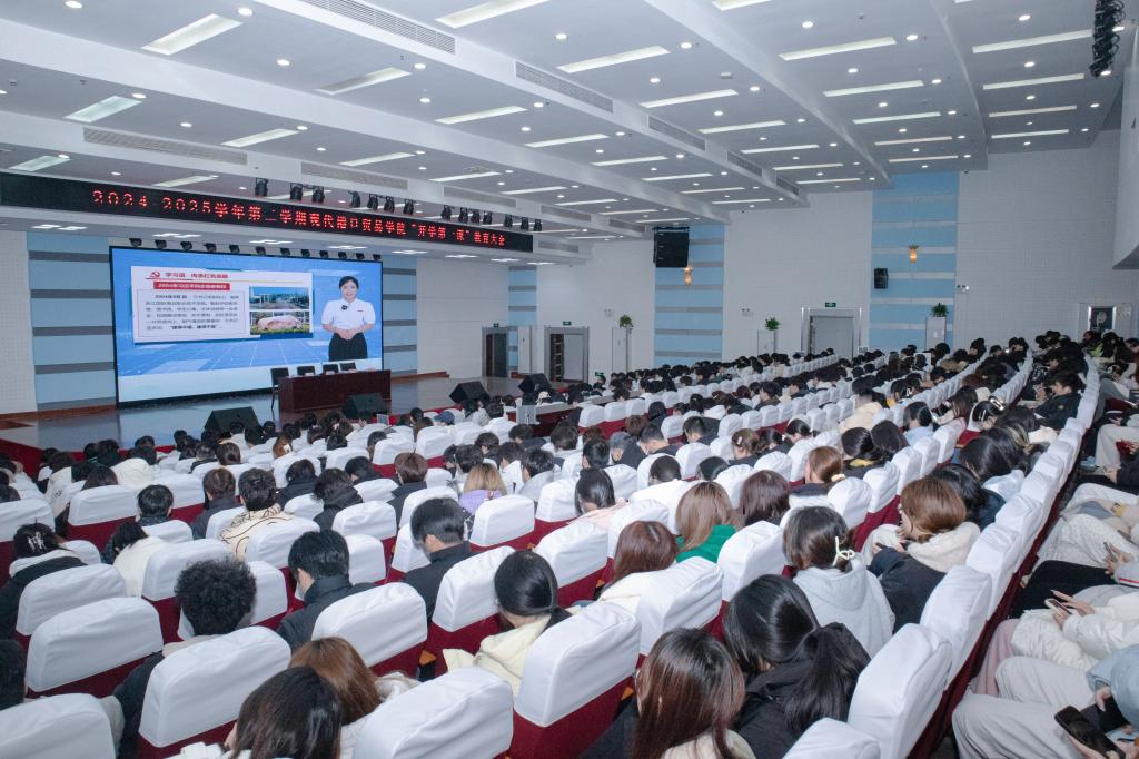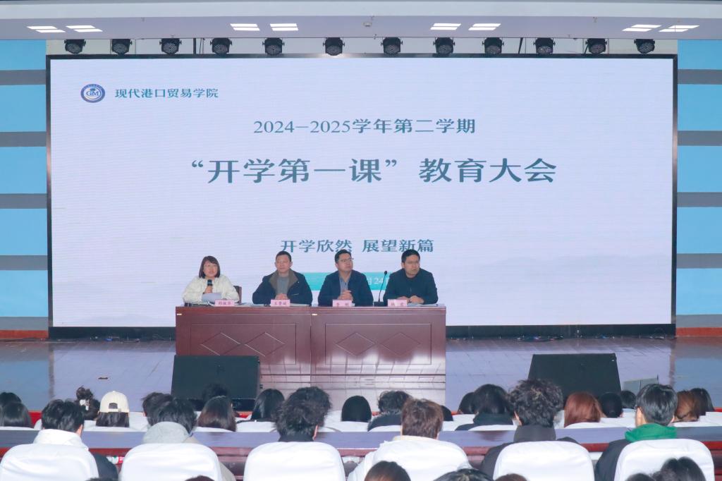 2月24日,现代港口贸易学院在图书馆4楼报告厅召开新学期教育大会。学院领导、辅导员以及全体在校学生齐聚一堂,会议由学院党总支副书记邵佩华主持。