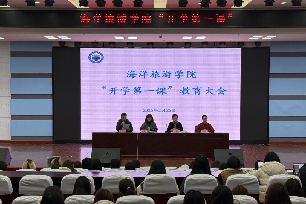 2月26日,海洋旅游学院在图书馆4楼报告厅举行新学期“开学第一课”学生教育大会。学院全体教职工与2024级学生参加大会,会议由学院党总支副书记管建民主持。
