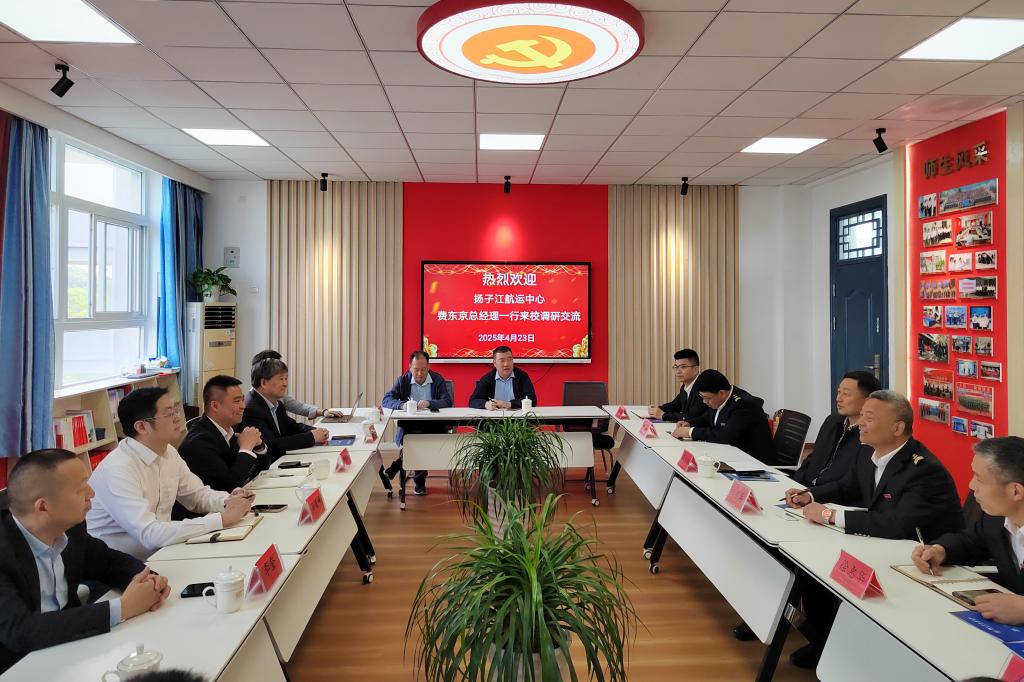 4月23日,扬子江航运中心总经理费东京等5家航运企业代表一行11人来航海工程学院洽谈合作。校党委委员、副校长夏志刚,航海工程学院院长汪益兵及航海类专业相关教师参加座谈。