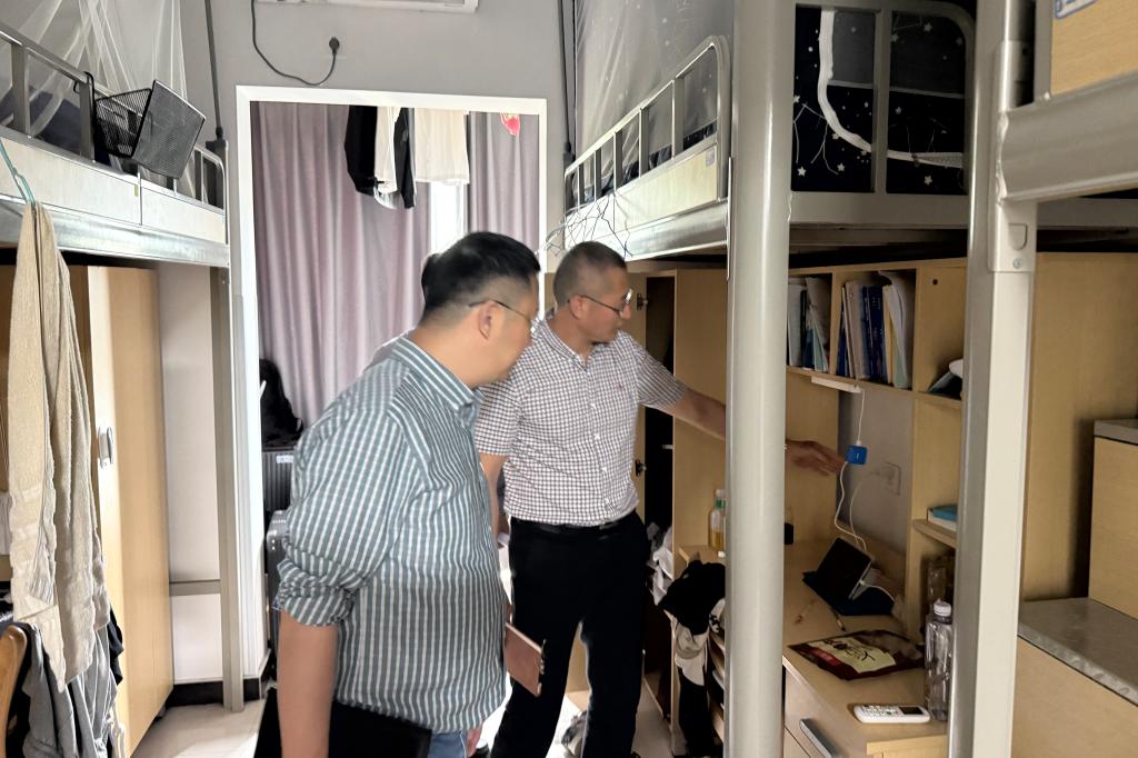 在检查的过程中,检查组认真排查,同时教育引导学生要注意用电安全,树立安全防范意识。同学们积极配合检查,整体情况较好,未发现使用大功率电器,但个别宿舍存在插排使用不当、宿舍卫生较差、寝室内有烟盒等问题,检查组均已在现场督促学生进行整改。