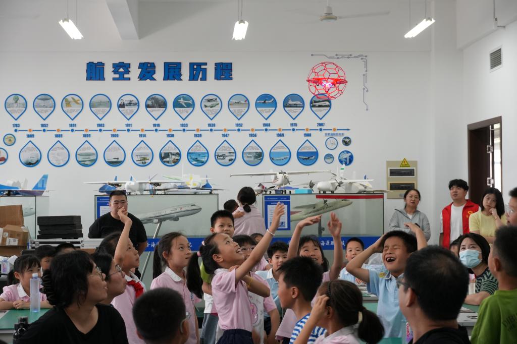“无人机怎么飞起来的?”“它能帮我们送快递吗?”在无人机实验室,队员们用浅显的语言讲解飞行原理,展示救援、航拍等应用场景。孩子们围在四旋翼、固定翼无人机旁,触摸设备、踊跃提问,团队成员以“儿童视角”一一解答,现场化身科学课堂。“无人机足球”对抗赛则将气氛推向高潮。红蓝两队学生通过手柄操控无人机攻防,在竞技中理解编程与操控逻辑。活动尾声,孩子们仍意犹未尽,科学的种子已悄然生根。通过沉浸式体验,团队将抽象的技术转化为可感知的乐趣,激发了青少年对航空科技的兴趣。