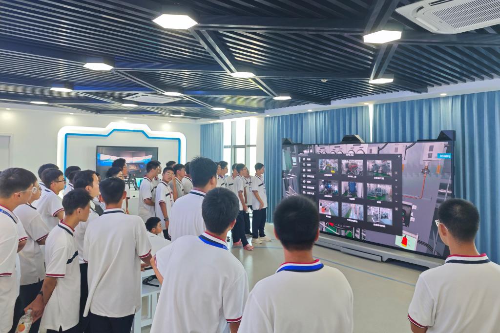 随后,在学院教师的带领下,新生们以班级为单位分批走进现代航运虚拟仿真实训基地、航海模拟器实训室、自动化机舱等特色教学场地。在虚拟仿真中心,同学们通过沉浸式设备体验船舶驾驶、海上应急处置等场景,直观感受现代航海技术的便捷与精准;在航海模拟器前,专业教师现场演示仪器操作流程,讲解航行数据读取、航线规划等核心知识;在自动化机舱内,各类船舶动力系统、控制系统实物让同学们对轮机专业的实际应用有了更具象的认知。传统教学设备与新兴虚拟技术的深度融合,为新生们构建起立体、生动的航海知识体系,有效激发了大家对专业学习的兴趣。
