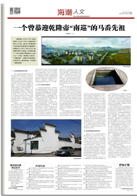 《舟山日报》:一个曾恭迎乾隆帝“南巡”的马岙袁氏先祖