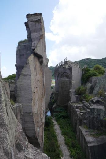 因为两度海禁,舟山的采石业与历史记载都难觅踪迹。真正形成较大规模石宕的,据民国《岱山镇志》卷十九志物产“两头洞石”记载,是在清朝同治初年,开始只有十余宕,到了民国就有四五十宕了,还成立了公司,将石材运销上海等处。迄今形成的漂亮的开凿遗迹石景五十余处,石宕则有百余口了。