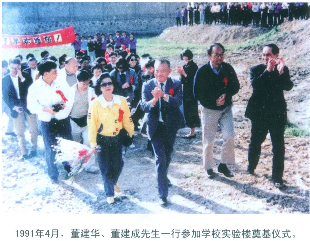 1991年4月30日,董建华、董建成兄弟一行三十余人第二次来到舟山水产学校,也就是舟山航海学校的校园,参加学校航海实验楼的奠基仪式。