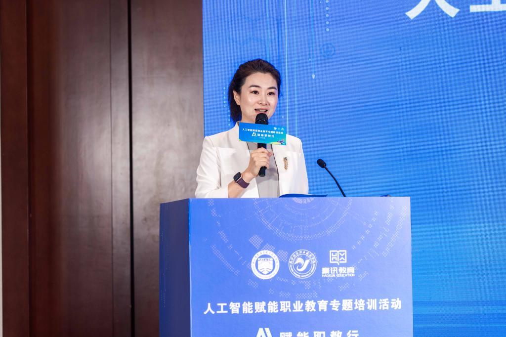 教育部职业院校信息化教学指导委员会能力提升专委会秘书长程庆梅教授以《AI如何助力教师提高教学能力》,深入探讨了AI赋能教师专业发展的多元化应用场景,覆盖教学设计、课堂互动、精准辅导等关键环节,清晰勾勒了智能化教学能力提升的未来图景。