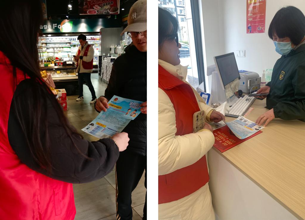 社区工作人员在对志愿者们进行培训后,“小叶子”们便主动热情地投入到工作当中。他们向社区内的商户和居民分发反诈宣传单页,进行反诈宣贯,提醒他们要谨记“防诈五不要”,提高个人信息保护和财产安全意识。